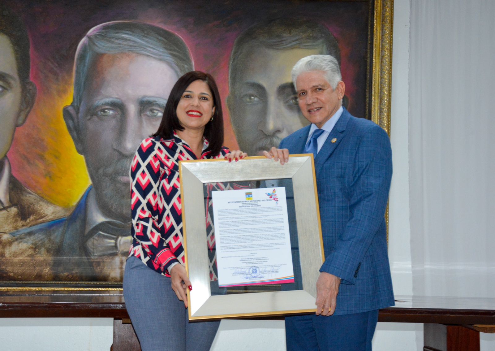 El Ayuntamiento del Municipio de Salcedo declaró al presidente del Senado de la República, Eduardo Estrella, como Visitante Distinguido, con la entrega de un reconocimiento por su honrosa hoja de servicio público a favor de la nación.